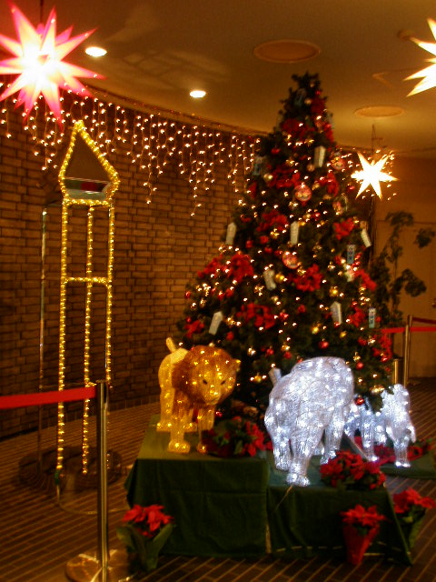夕方はこんな感じ。ツリーのイルミネーションが現れたり消えたり・・・