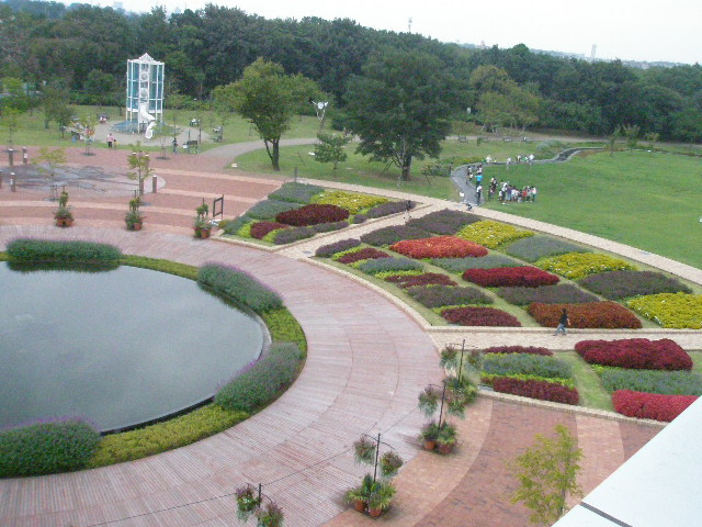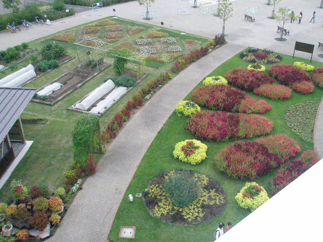 左の円がエントランス広場(水盤池)・右はメイン花壇です。