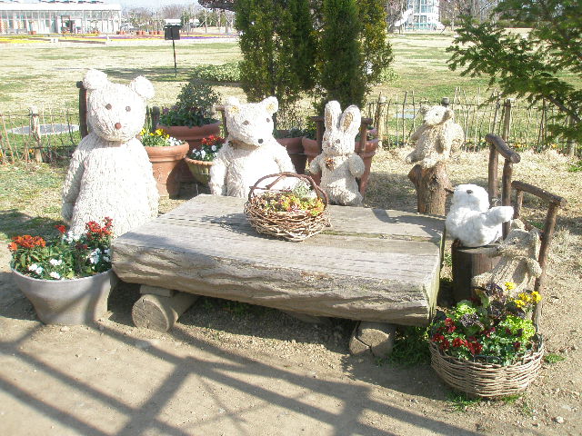 チューリップは葉のみで蕾はなく、ビオラ、デージー、ヒヤシンス、水仙、チョウセンレンギョウ、ヒュウガミズキ、ウメは綺麗に咲いていました。