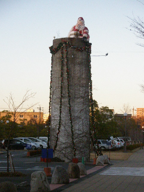 煙突モニュメントもクリスマスモード