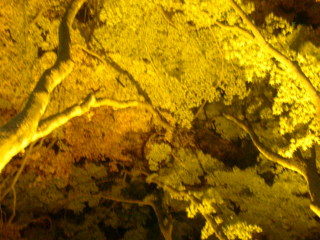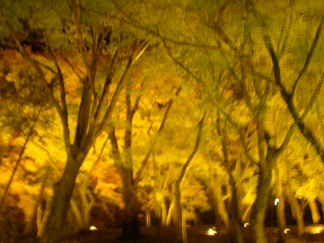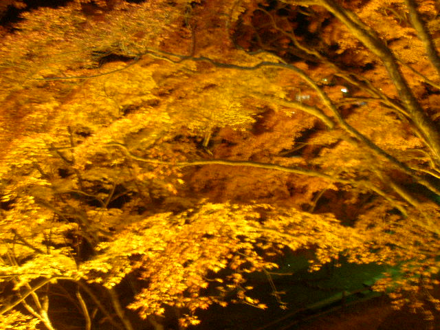 夜間ライトアップされたモミジは幻想的な美しさだ。