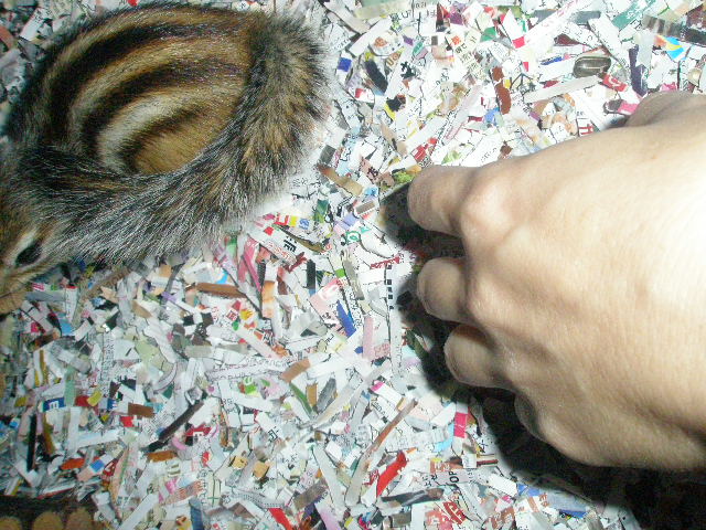 某サイトに「ほつれ等の繊維はシマリスの歯では切れない確率が高い。素材も食べて腸閉塞、よれて糸状になると強靱な素材になる為、非常に危険です使用しないことをお奨めします 」と書いてあったのに、うちの子は大丈夫だろうと過信したのが悪かったですね。。。