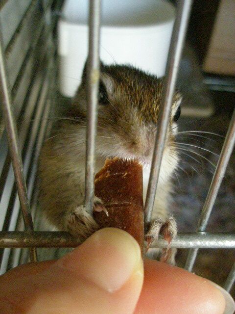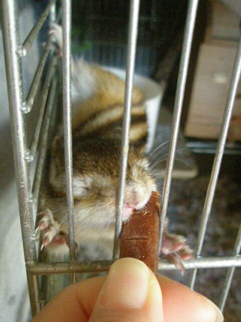 食べさせて良いのか判りませんが、見せると食べます。3齧りくらいかな?