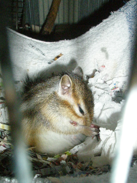 タオルハンモックに床材やらティッシュやら運び込んで毛づくろい中~☆