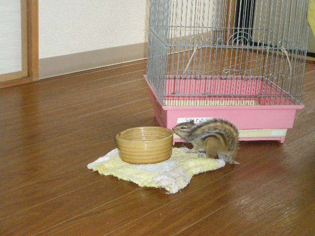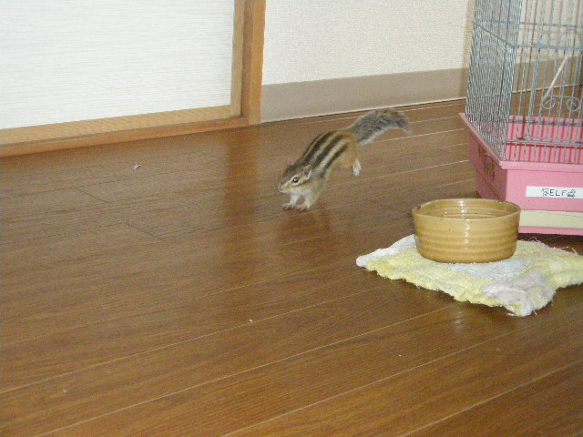 捕まえようとする私と遊んでいるつもりなのか、私の手の届きそうなところをクルクル回ってみたり、エサ置き場を物色したりetc何だか楽しそうにしてて、なかなか戻ってくれませんでした。