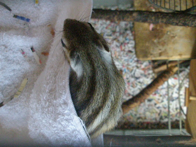 ハンモックから頭だけ出して、まわりをきょろきょろ。
