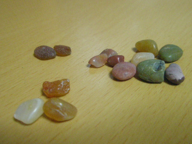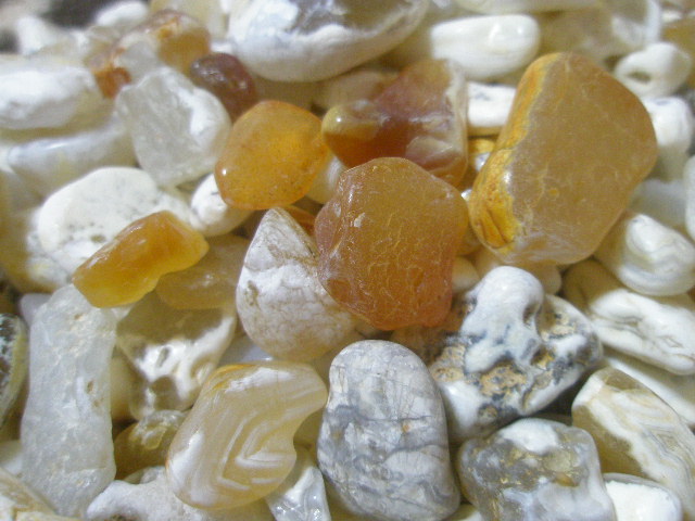 しゃがみこんで小石を掻き分け小指程の小さいメノウを拾ってきました。