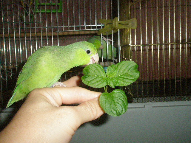 私もハーブティに使っていますが、今日は2羽にも味わっていただこう!と摘んできました♪