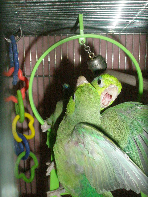 下段の止まり木まで転げ落ちる大喧嘩になりましたとさ・・・