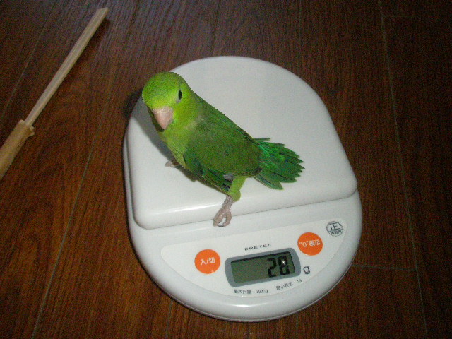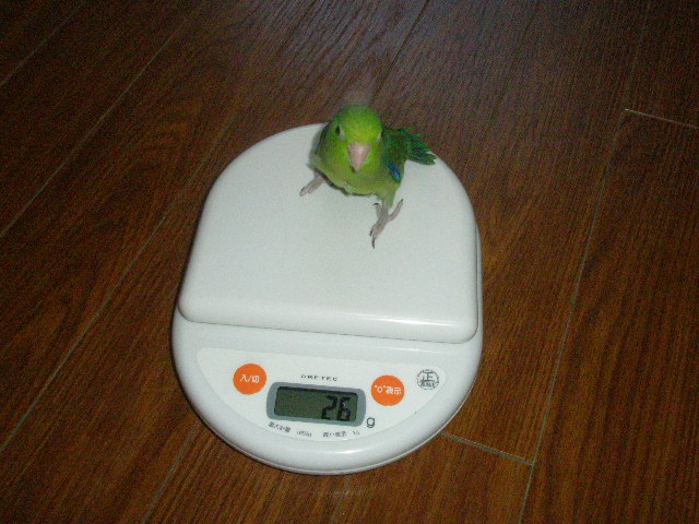 嫌がるのを無理やり捕まえてスケールに乗せたのですが、羽を切ってあるのにガンガン逃げ回ってました。。。