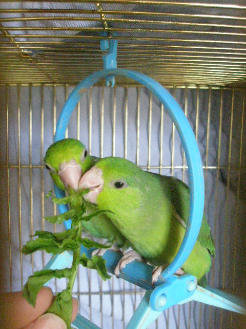 コザクラ・ロッキーは葉物はあまり食べず、セキセイはハコベしか食べなかったので、こんなに美味しそうに食べる子は初めてです(嬉)