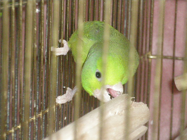 ショップで体グリーンで頭付近が少し黄色のアルビノ・マメルリハがいました~♪