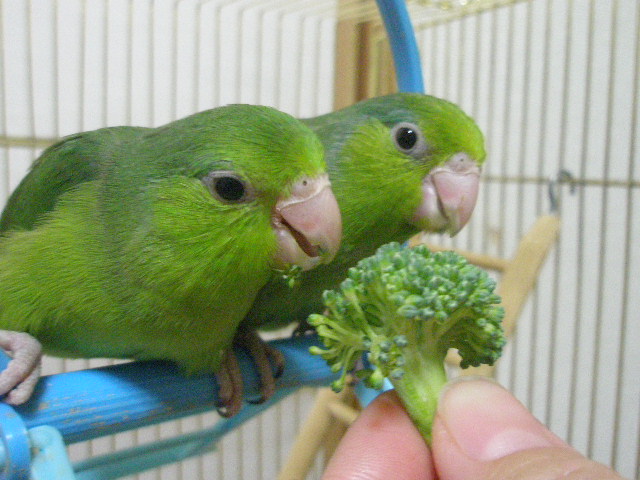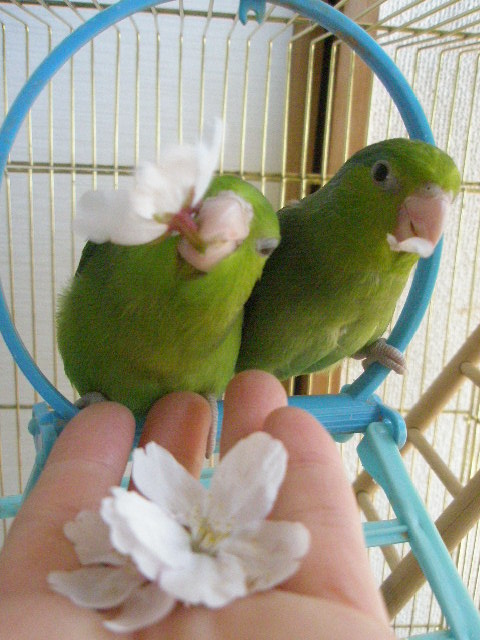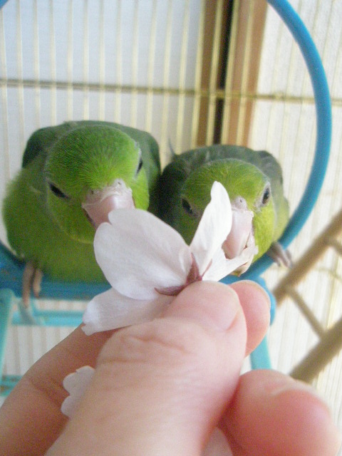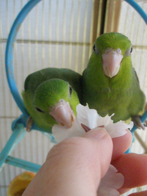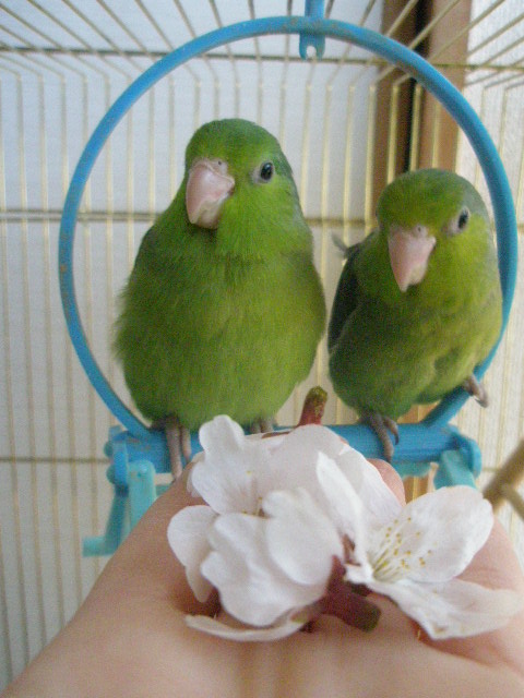 2羽のマメルリハインコの日常やベランダの様子 2011.4.3にお迎え。 同年2月頃、静岡県で産まれました♪