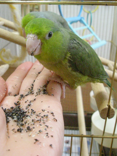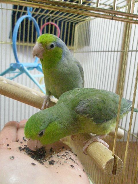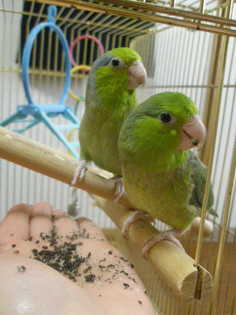2羽のマメルリハインコの日常やベランダの様子 2011.4.3にお迎え。 同年2月頃、静岡県で産まれました♪