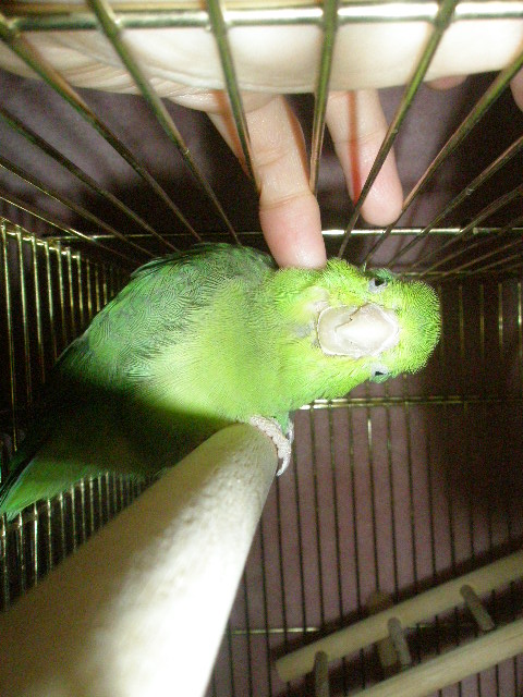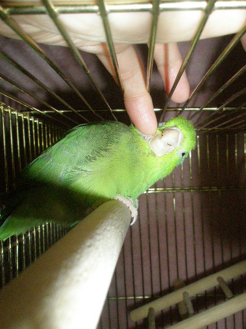 ケージの網?の幅が狭いので指が痛いですが、スキンシップできるチャンスだし気持ち良さそうだし、我慢しています。