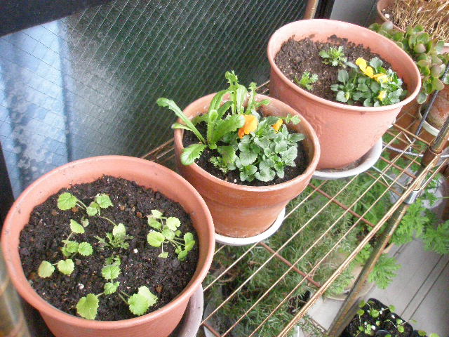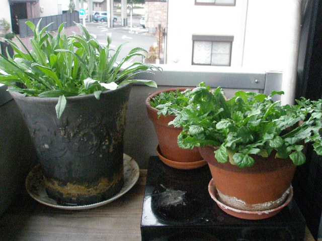 真ん中の鉢には挿し芽したキンギョソウを植え付けました。