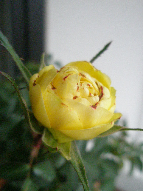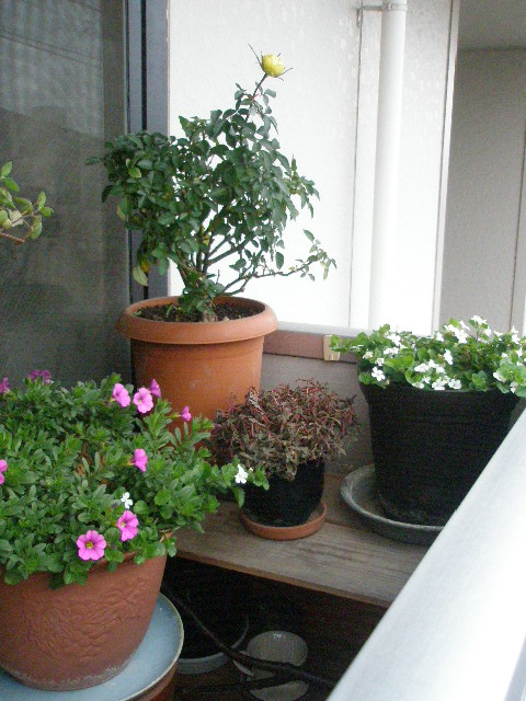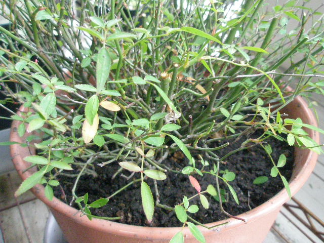 下の棚には昨日頂いたミニバラ。。。多分レンゲローズ。