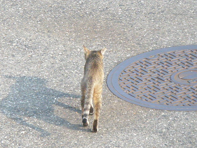 ベランダから見下ろすとネコがしっぽを左右にフリフリ。。。