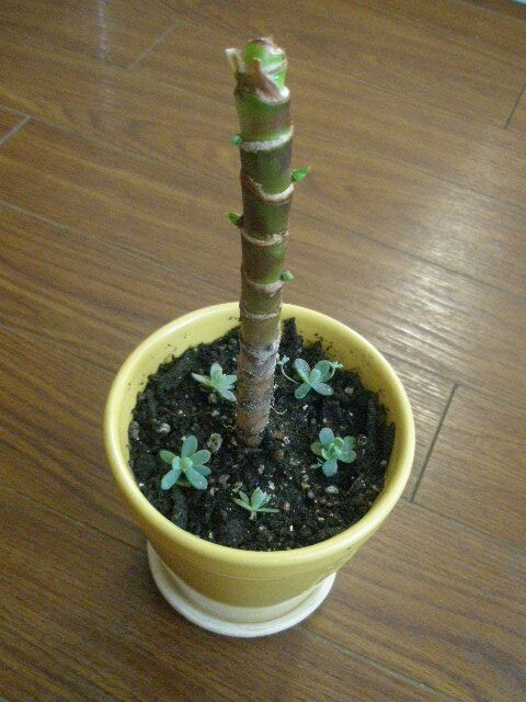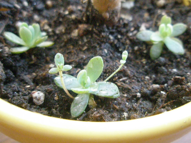 瀕死状態のアイチアカの根元に、プチプチちぎって早速植えてみた。。。というか土に置いてみた。。。