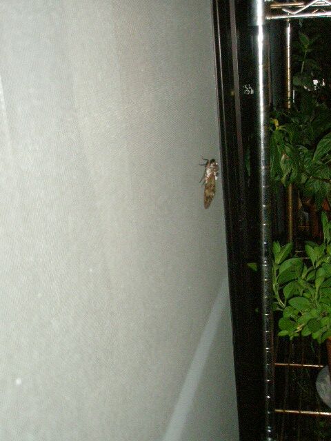 夕方雨宿りに来ていたセミですが、深夜2時半頃確認したらまだいました。