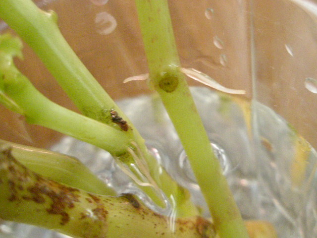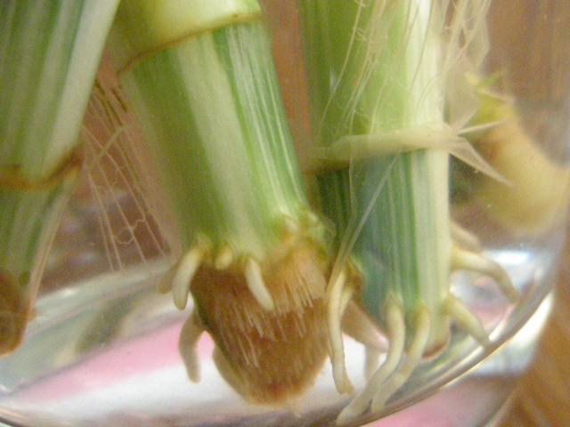 水に浸かっている部分ではなく、水面ギリギリのところから発根してます。