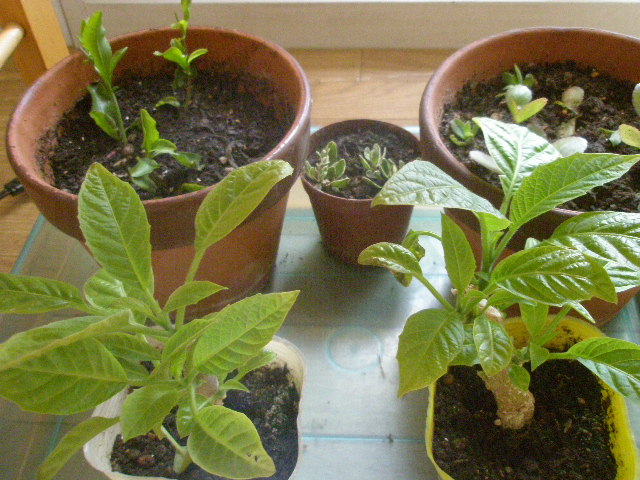 その他挿し芽中のルリマツリ(瑠璃茉莉)、ポーチュラカ、ブルー・デイジーやマザーリーフが室内に避難しています。