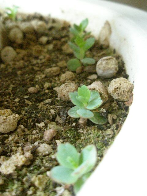 子宝草のチビたちはパキラの根元へ。植える場所がないの。。。