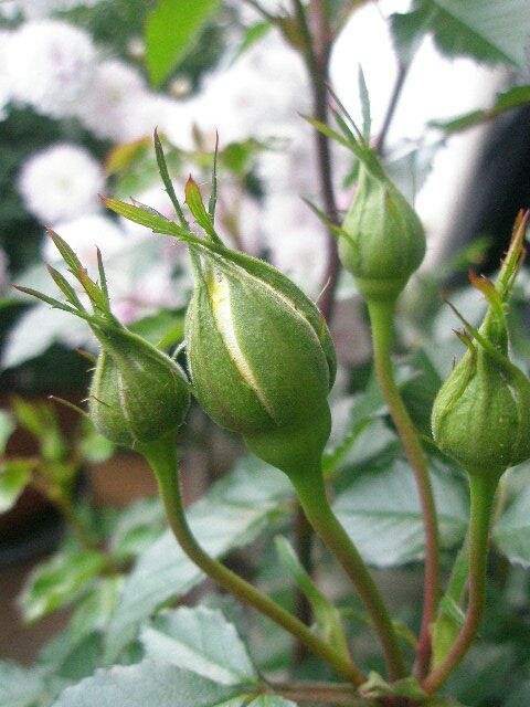 ミニバラの蕾の周りに、プックリアブラムシが!
