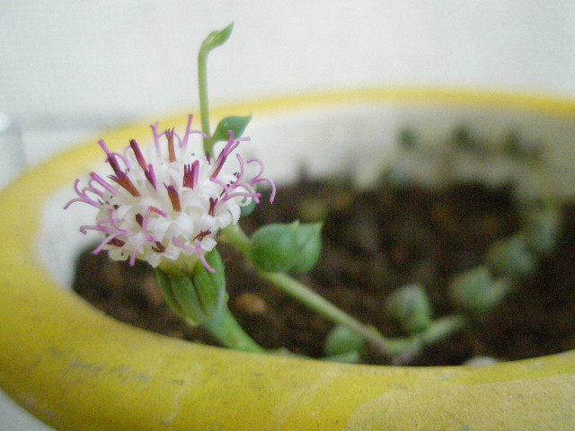 謎の植物に小さな小さな。。。白い花が咲きました。