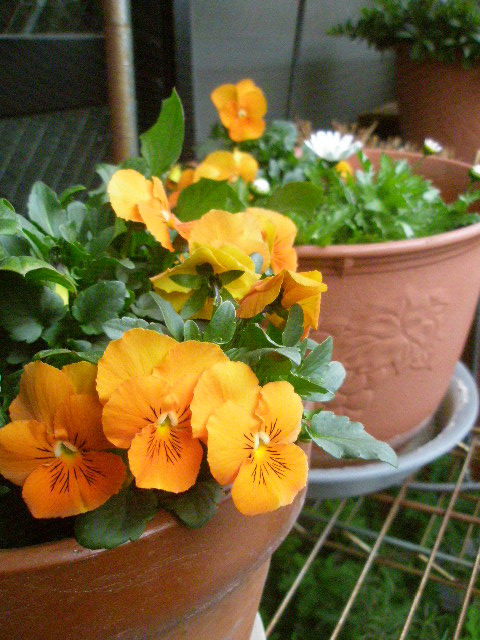 オレンジ色がステキなビオラ。コレは母にあげる用で、一緒にクレピスを植え込んでいます。