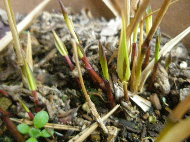 成長や花を楽しみにしてはいますが奴の勢いが凄すぎて、水仙はほっそいほっそい葉しか出ず、きっと咲かないと思います。。。