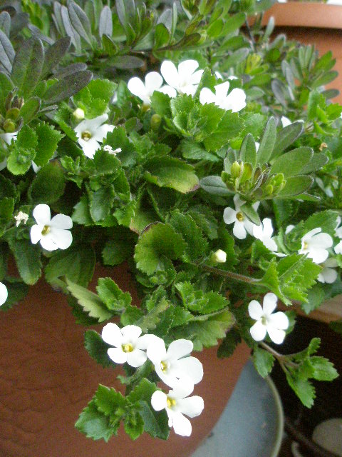 夏頃にカリブラコアの鉢に挿し芽したステラ(バコパ)は親株よりずーっと元気に成長し、たくさん花も咲いています。