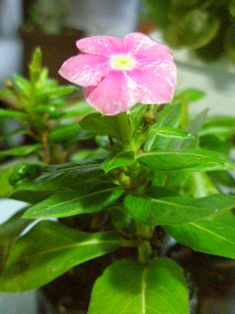 水挿し中のニチニチソウ(ビンカ)は一向に根がでる気配がありませんが、今冬2度目の開花です♪