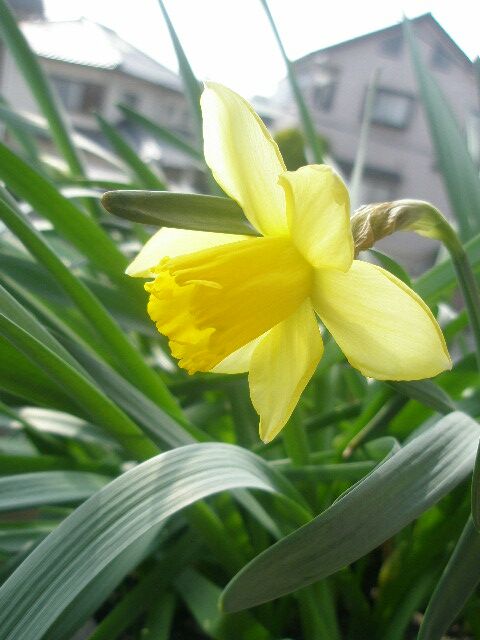 USJ出発日ぷっくり蕾だった水仙が、帰ってきたら開花してました♪