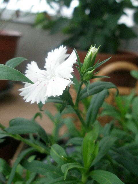 室外機の上に置いているダイアンサス。