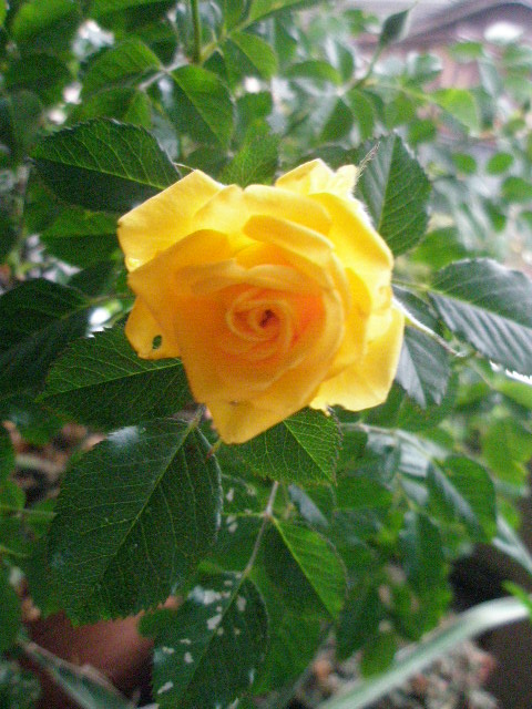 ピンク色のミニバラは鉢周りでバッサリ剪定しました。