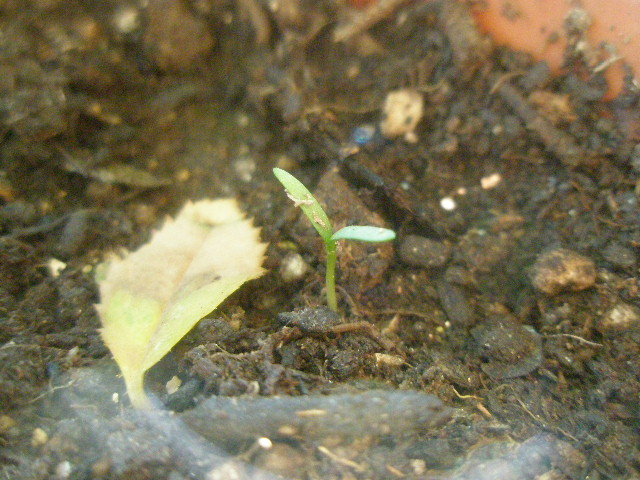 (右下)1ヶ月前、種を蒔いたモモイロタンポポ。ギザギザの葉っぱが出てきましたよぉ~
