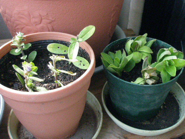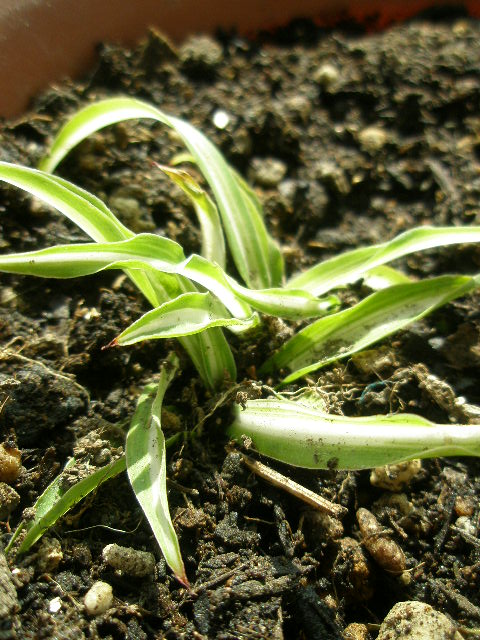 オステオスペルマムとアメリカンブルー(エボルブルス)、オリヅルランを挿し芽しました。