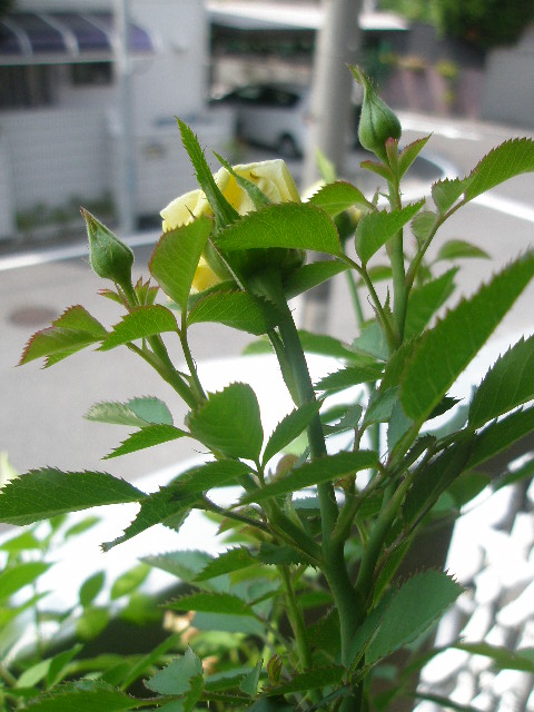 最近まで1枝に1個だけだったミニバラですが、数個蕾が付くようになりました。
