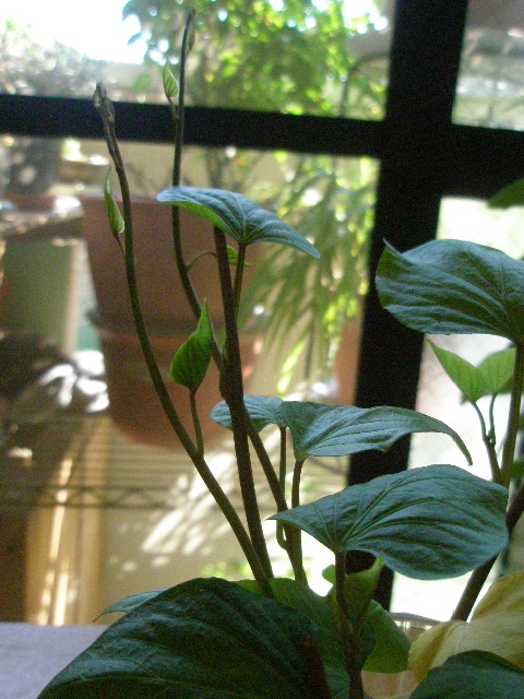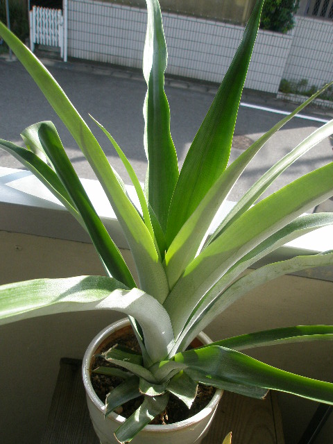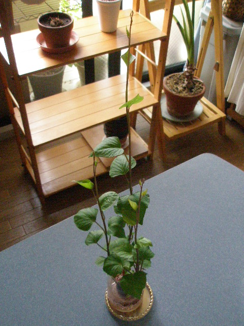 窓辺からちょっと離れた場所に置いているので、日光不足でヒョロヒョロ伸びているんじゃないかと推測。。。