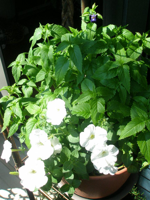 きっと「トレニア」&ど根性「ペチュニア」の寄せ植え。
