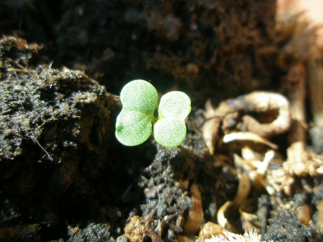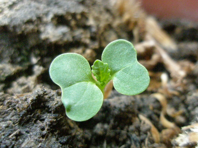 適当に種を蒔いた鉢から出てきた謎の植物。