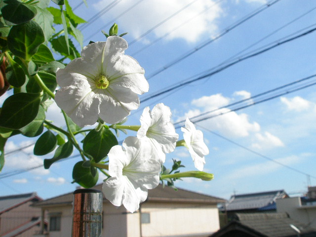 ここ数年ペチュニアを育ててきましたが、今年初めて白色を育てました。