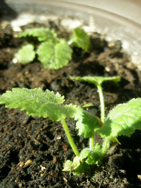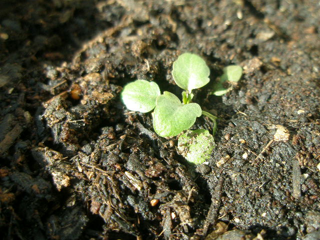 家に帰ってからじーっと観察していたら、ビオラorパンジーの幼苗っぽい芽を見つけました。