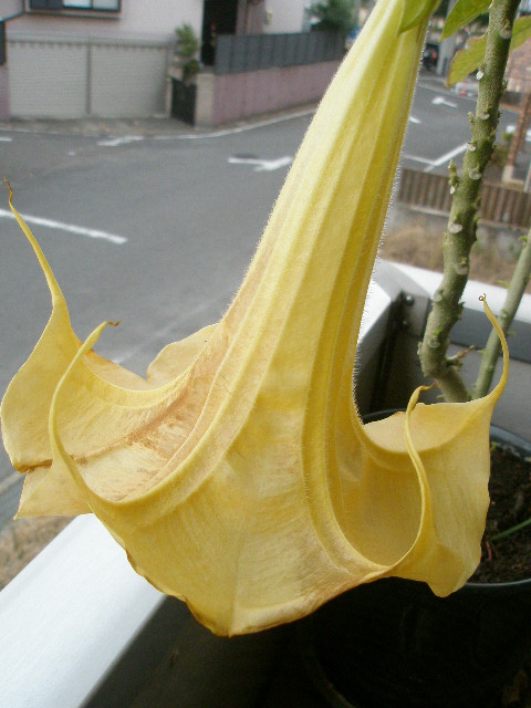 エンジェルストランペットは花びらが茶色く痛んできました。