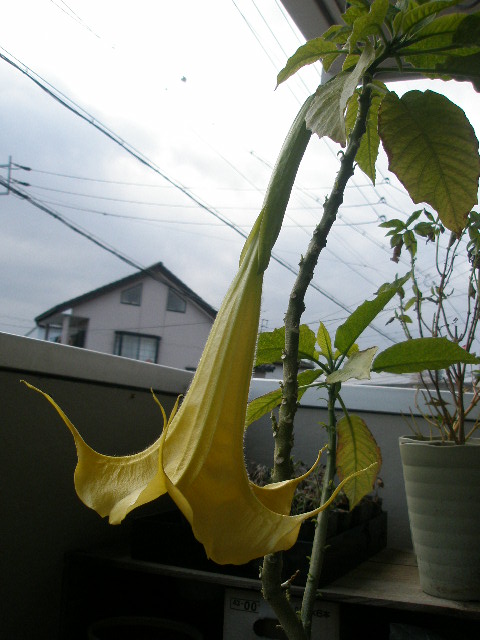 みぞれも降っちゃって、寒さに耐えていた可哀想なアンゲロニアをやっと室内に移動させました~