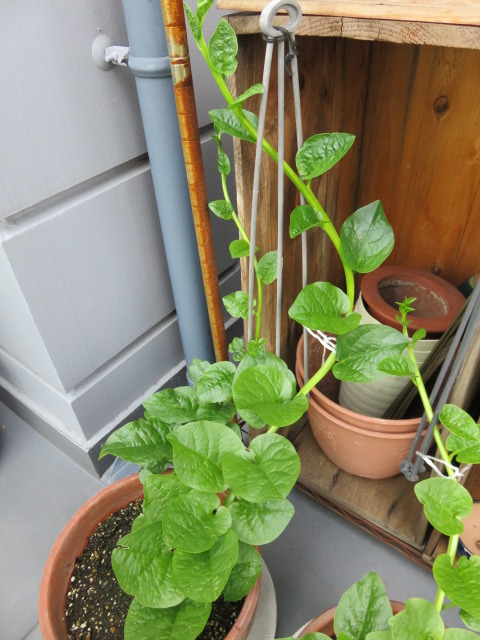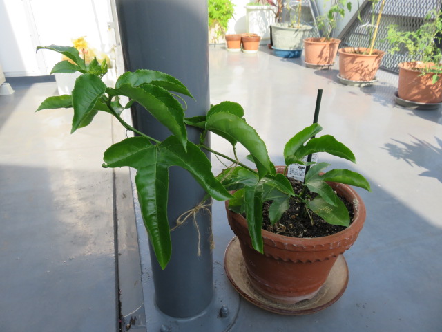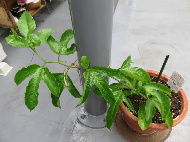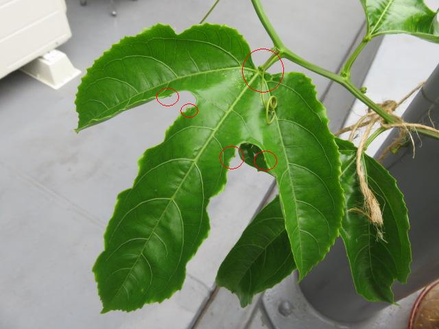 葉の付け根?から蜜が出るらしく、毎日のようにアシナガバチが来ているパッションフルーツ。