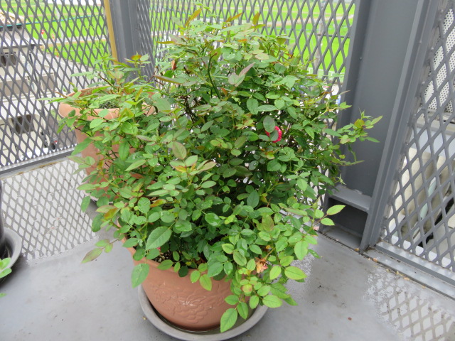 葉が茂り、もっさりしているマーブルミニバラ。嬉しい♪