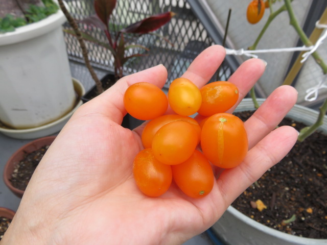 もうちょっと熟してから収穫したかったのですが、これ以上割れたら嫌なので食べちゃう☆