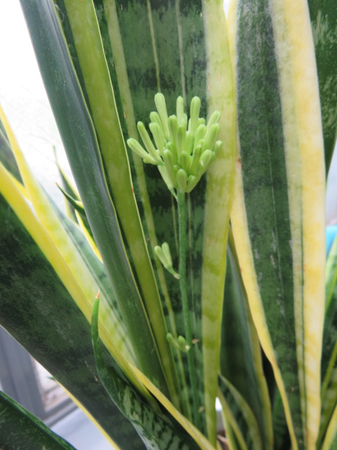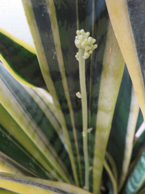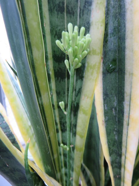 そうそう、引越し後気付いたのですがサンセベリアに蕾が上がっていました。